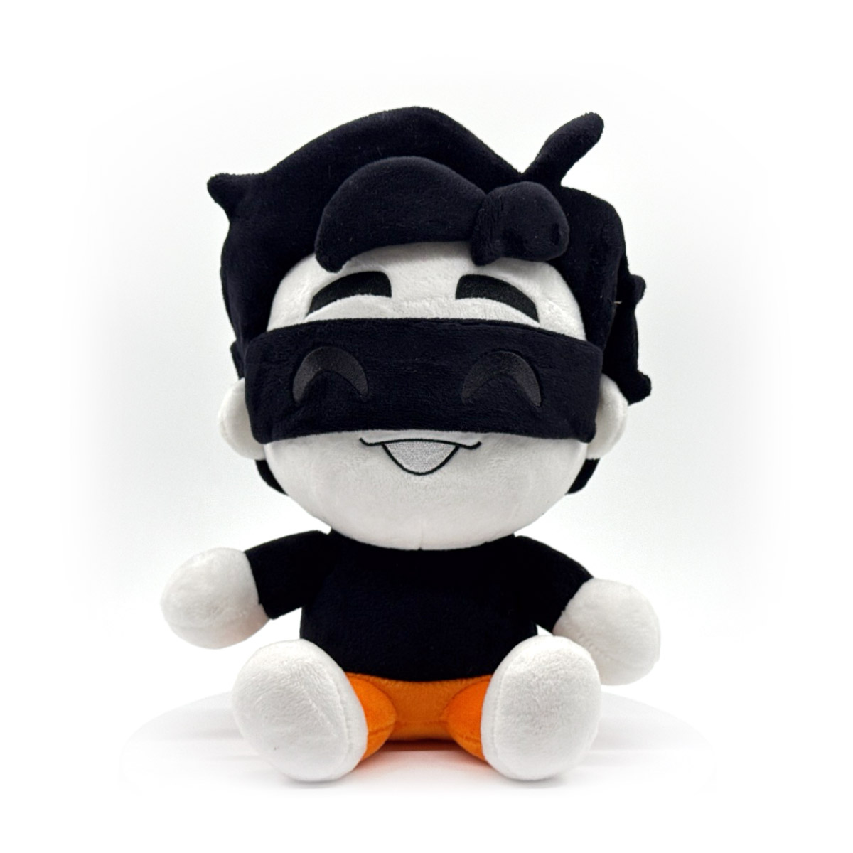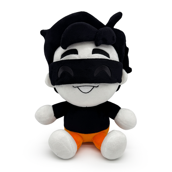 Mikasacus is adding another AKA, ‘Youtooz plush’! Sitting at 9 inches tall, he has a black bar over his eyes above a smiling mouth that radiates happiness, with shaggy black hair covering his head and the fringe falling over thick eyebrows. He wears a simple black long-sleeve shirt, along with orange pants and white shoes, as his legs kick forward lazily. This plush is packed to the seams with 100% PP cotton and is made of the softest minky materials, absolutely perfect for cuddling or making struggle meals with!