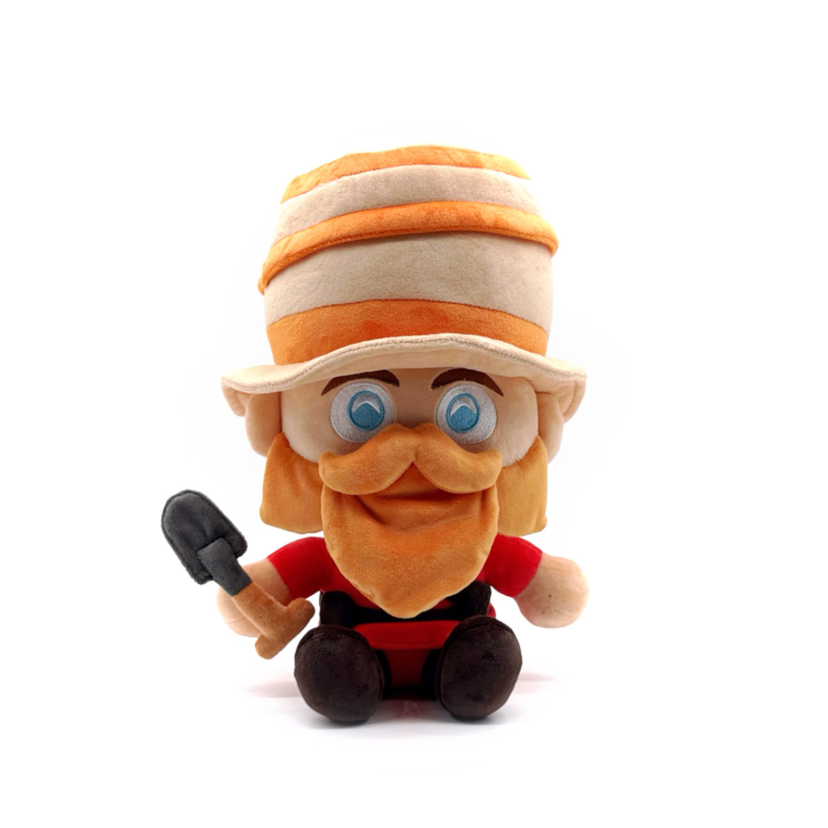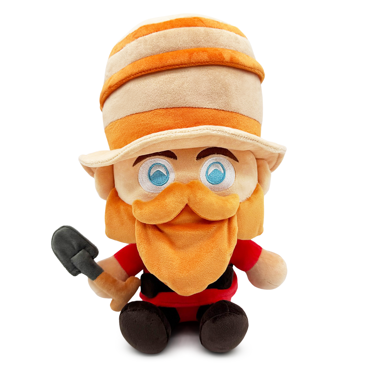 SoundSmith has rocket jumped his way into Youtooz for a game ending plush debut! Sitting at 9 inches tall with unblinking blue eyes staring out from above the thick orange mustache and beard covering his face, a stripped Dr. Dapper Topper slopes to the side atop his head with the round brim resting above his small ears. Holding a deadly shovel in his right hand, black straps wrap around his chest and waist as he wears a deep red jacket with matching pants and black boots. This plush is packed to the seams with 100% PP cotton and is made of the softest minky material, absolutely perfect for cuddling or smashing things with!