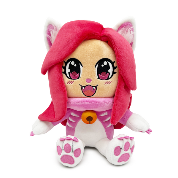 SrtaLuly has opened the most legendary egg there is! And what was inside? Her Youtooz plush! Sitting at 9 inches tall with an open smile revealing a pair of sharp white fangs underneath two huge pink and black eyes, long red hair cascades from her head as a thick fringe falls down either side of her face. Dressed in her iconic Roblox outfit, she wears a pink and white cat suit with marks on the chest as claws stick out from her paws and white ears poke out from the top of her head. This plush is packed to the seams with 100% PP cotton and is made of the softest minky material with accents of long pile, absolutely perfect for cuddling or opening eggs with!