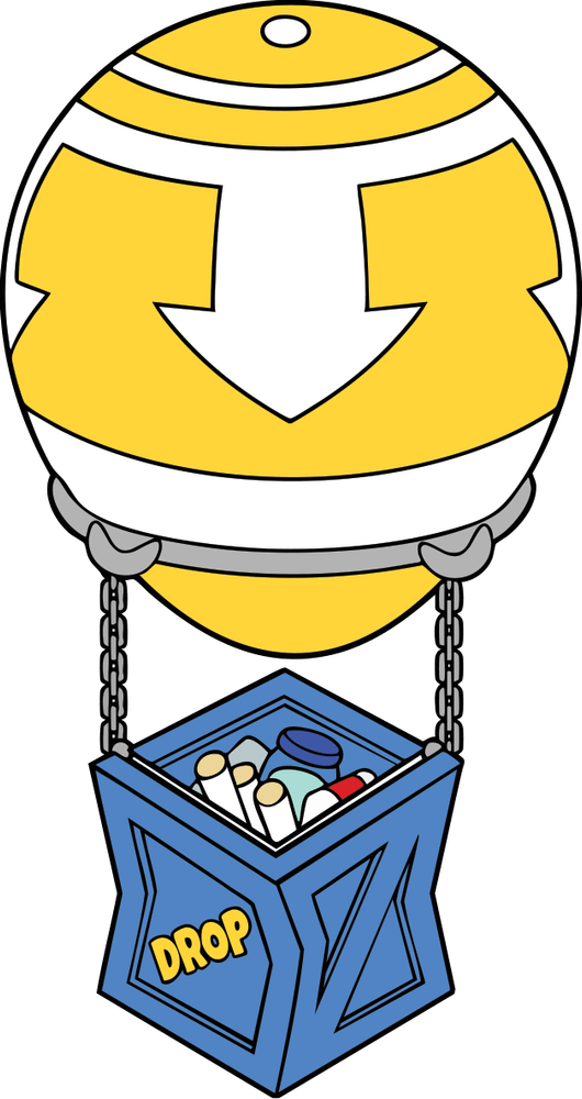 Time to level up your gear with our brand new pin! At 2 inches tall with a shiny, high-quality finish, this pin features a yellow and white balloon attached to a blue crate by chains that has a magnetic top which can be removed to reveal a stack of supplies. Perfect as decoration on a cork board or showing off on your tote bag, backpack, fanny pack, jacket or wherever your heart desires, this pin is sure to turn heads and catch the eyes of anyone you pass, letting them know who’s geared up!