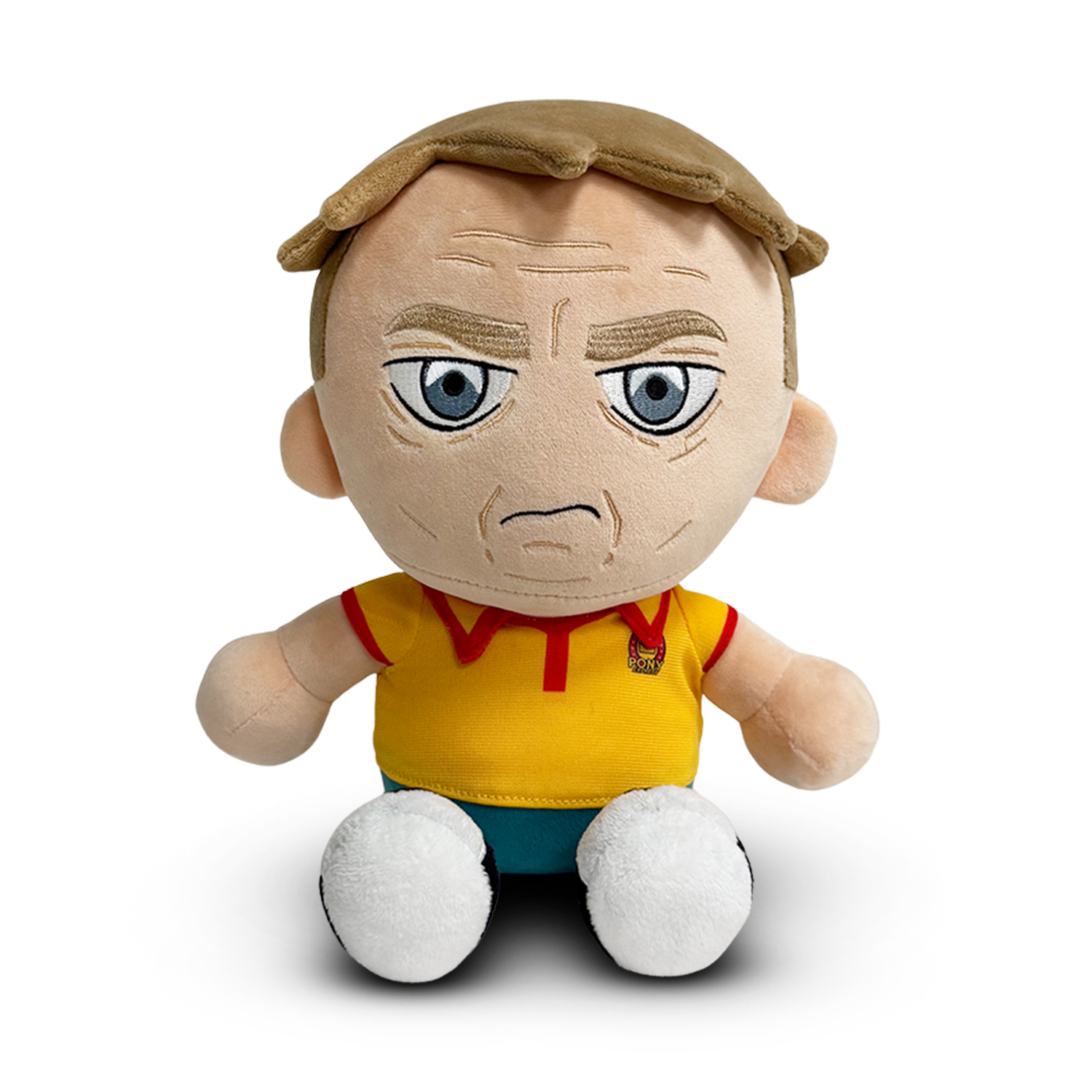 Swansea’s taken a break from repairing the Tulpar for his Youtooz plush debut! Sitting at 9 inches tall with an unimpressed frown as disgruntled blue eyes rest under thick furrowed brows, his face is covered in deep wrinkles as short brown hair tops his head. Wearing a yellow Pony Express polo shirt with red detailing and a logo on the chest, his blue jeans lead down to white sneakers with blue bolts on either side. This plush is packed to the seams with 100% PP cotton and is made of the softest minky material, absolutely perfect for cuddling or fixing engines with!
