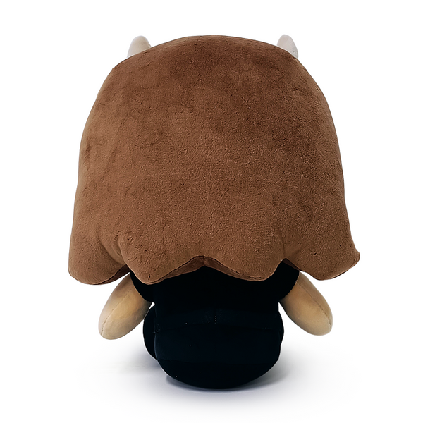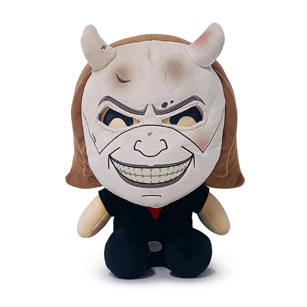 Now it’s your turn to grab The Grabber with his plush debut! Sitting at 9 inches tall with a nightmare-inducing smile curling across his stained mask and furrowed eyebrows resting over hollow eyeholes, a pair of short horns pokes out from the top of the mask, as light brown hair falls from his head to flick out in sharp points above his shoulders. Dressed in a black shirt that matches his pants and shoes, the red shirt underneath is viewable from the open neck as a grey belt buckle rests on his waist. This plush is packed to the seams with 100% PP cotton and is made of the softest minky material with accents of felt, absolutely perfect for cuddling or answering the phone with!
