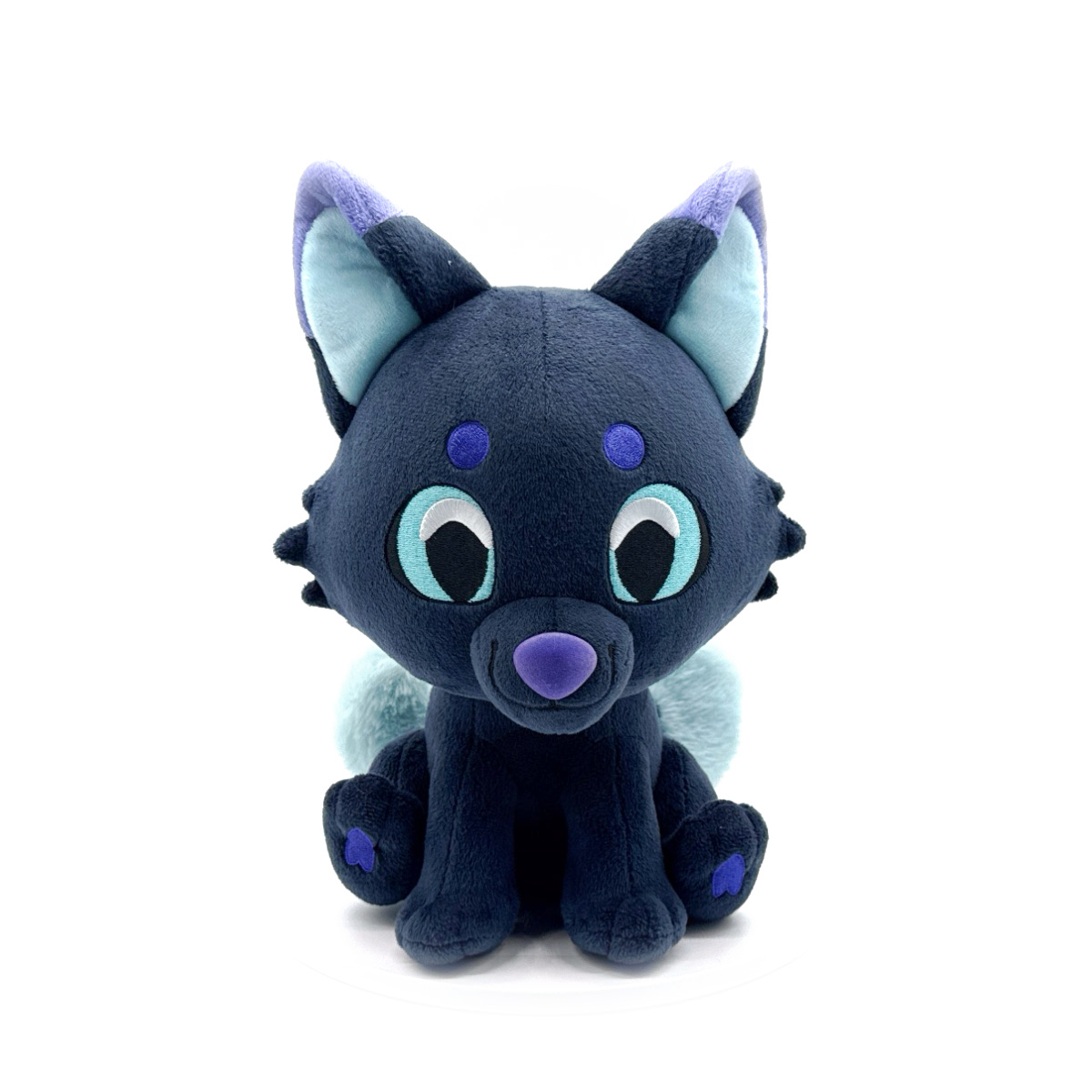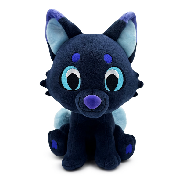 Twy has pried their way from the warmth of the tavern’s fire to arrive at Youtooz for their plush debut! Sitting at 9 inches tall with luminous blue eyes at the center of their face, a pair of round, deep blue eyebrows rests above them to match the adorable nose above their smiling mouth. With large pointed ears atop their dark head, their back legs kick forward to show off heart-shaped paw pads as a trio of fluffy tails with light tips curl out from their back. This plush is packed to the seams with 100% PP cotton and is made of normal and long pile minky materials, absolutely perfect for cuddling or grabbing a drink with!
