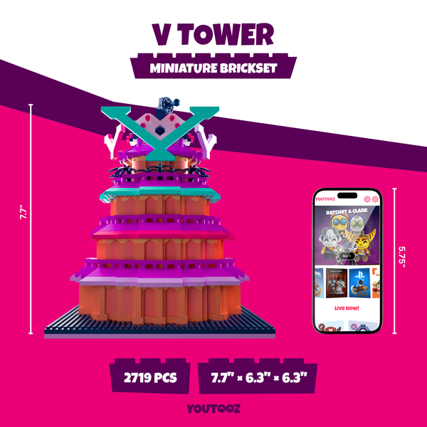 Are you ready for your on-screen debut? Well V Tower’s just the place for you! And what better way to climb to the top of the industry than brick by brick, with this expertly crafted brickset! Reaching into the sky with dark pink windows nestled amongst pale walls and four pink roofs that each have a different color trim running along the outside, deep green plants hang over the railing of the top balcony underneath pink, purple and blue V’s as a set vibrant pink lips sit in front of the dark antenna sticking out from its top. Consisting of 2,719 pieces and measuring in at 7.7" × 6.3" × 6.3" with an expertly written instruction booklet to help you build your very own piece of hell, this brickset is the perfect addition to your Hazbin Hotel collection or letting people know who’s the star of the show!