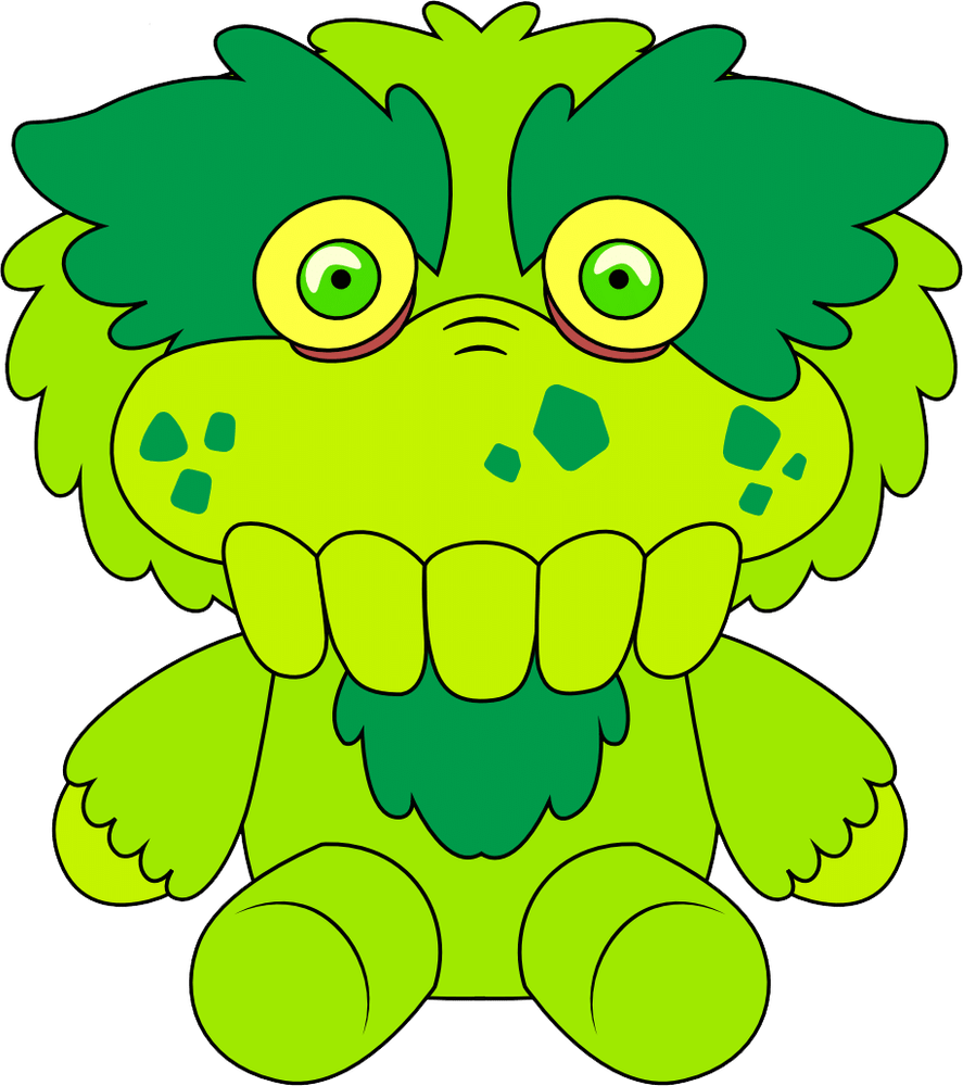 We've performed the ritual, said the right chants and sacrificed all the... nevermind... Because the clouds have parted and music rained down on us as the Wiggly One landed in our arms! Sitting at 9 inches tall with his legs kicked forward as his fuzzy fur-covered body is bright green with dark chest hair and eyebrows, a series of thick teeth line his jaw under piercing green eyes. This plush is packed to the seams with 100% PP cotton and is made of normal and long pile minky materials, perfect for cuddling or singing with!