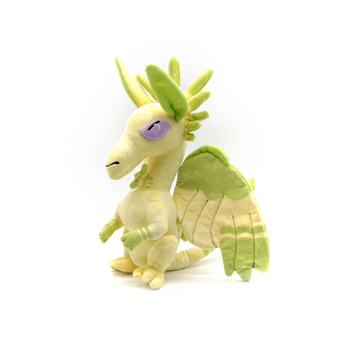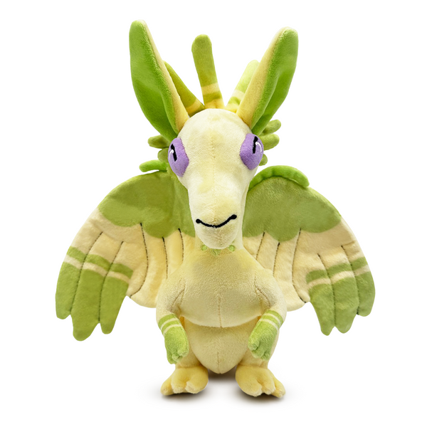 With a gust of fresh air, Willowyrm has made her Youtooz debut by flying off the Webtoon pages! And her next stop is right in your arms! Sitting on her haunches at 9 inches tall with arms curled up to the chest of her soft yellow draconic body that has green accents on the wings, tail and head feathers, lavender eyes shine from her long face underneath a pair of ears as a long tail extends behind her that with metal wiring inside it to make it poseable. This plush is packed to the seams with 100% PP cotton and is made of the softest minky material, perfect for cuddling or finding your hoard with!
