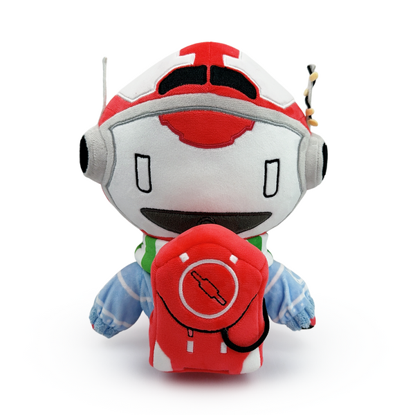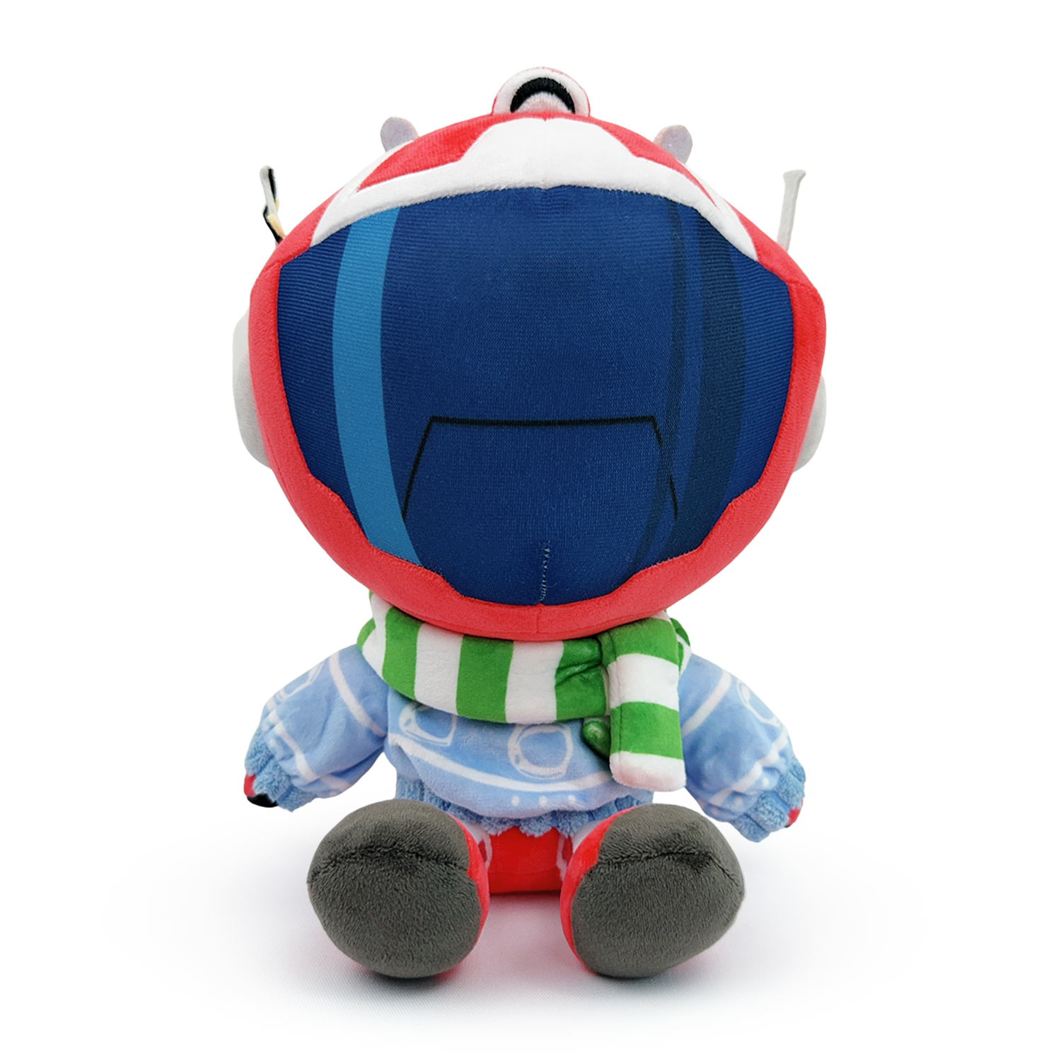 The Traveller flew off course and crash landed on a new planet where it’s the holidays all the time! Sitting at 9 inches tall with a dark blue visor covering the face of their panelled helmet that has a pair of antennas sticking out from either side, they wear a green and white striped scarf around their neck and a light blue holiday sweater, as a thick red backpack is slung over their shoulders, ready to store all their holiday discoveries! This plush is packed to the seams with 100% PP cotton and is made of minky and tricot materials with accents of felt, absolutely perfect for cuddling or adventuring on the new snowy planets with!