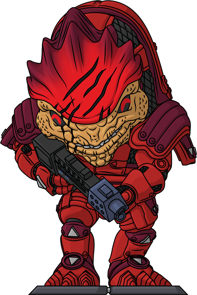 Wrex has tracked his new bounty into Youtooz! Hunching forward at 4.8 inches tall and gripping a blue-tipped shotgun in both hands, deep red eyes peer out from his scaly brown face above a slightly open mouth as thick scars gouge through a red and purple head. Dressed in matching armor that covers his entire body in thick plates and straps that run over his shoulders and humped back, grey triangles mark his hands, knees, and ankles as long claws extend from his feet. The exterior of his packaging sees a green pillar blasting energy into the sky. While the interior is a stark white with deep blue running around the top and bottom, this then continues on the protective sleeve, where his figure can be seen through the large, clear window at the packaging’s front. This collectible ships in a matte, embossed, protective outer sleeve and a custom-sized plastic protector for maximum protection during shipping.