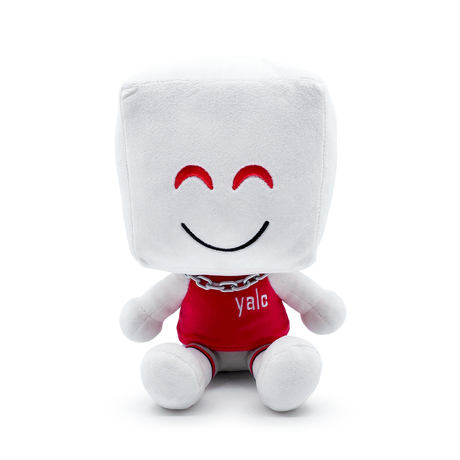 Yalc has joined us at Youtooz for a new adventure, his debut as a plush! Sitting at 9 inches tall with his legs kicked forward and an off-white skin tone as he wears light grey shorts and a red tank top with his name on the chest, he's accessorized with a silver chain around his neck under a smiling face and vibrant red eyes. This plush is packed to the seams with 100% PP cotton and is made of the softest minky material, perfect for cuddling or laughing with!